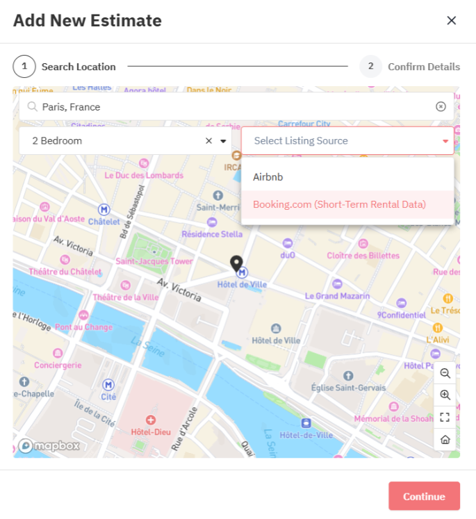 - You can now generate Revenue Estimates using Airbnb or Booking.com as your primary data source.