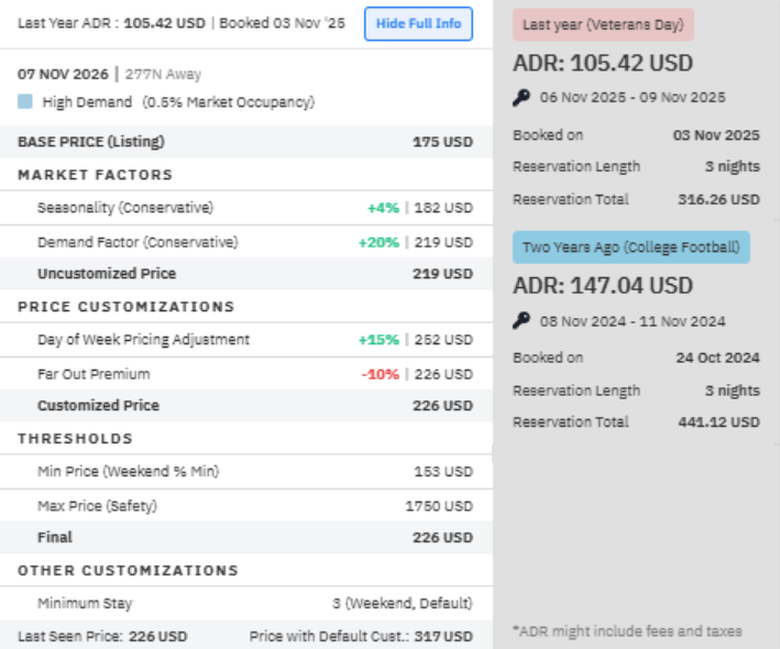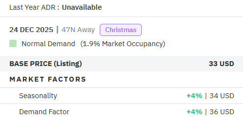 Any events or holidays in the vicinity of your listing will appear at the top of the tooltip. These dates often see higher demand, helping you understand the reason for the increased prices.