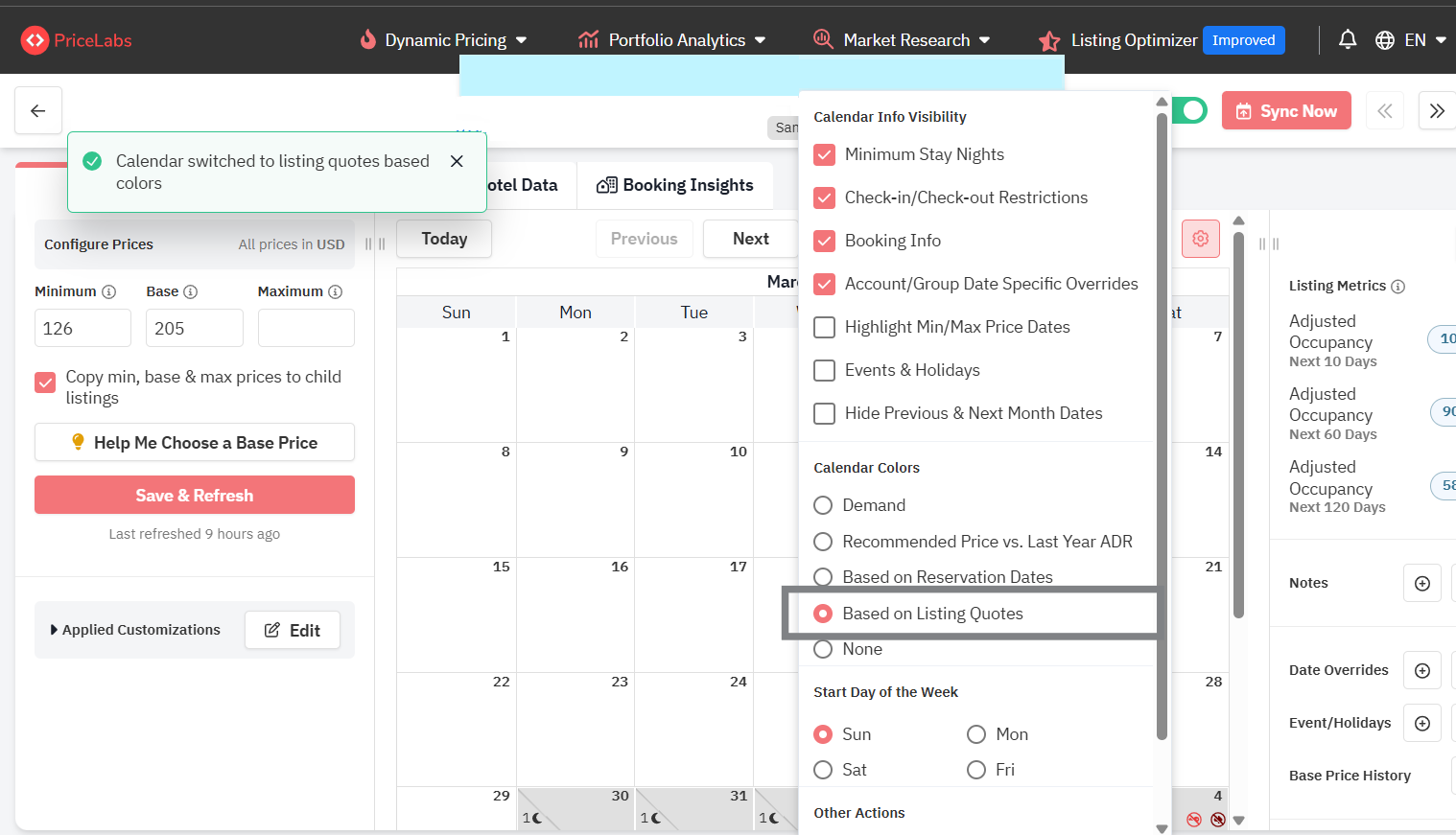 At this time, PriceLabs is configured to display price quote data, or the number of quotes for a property based on a given arrival date, sourced from Direct Booking Tools within the Listing Neighborhood Data, listing Pricing Calendar, and the Multi Calendar.