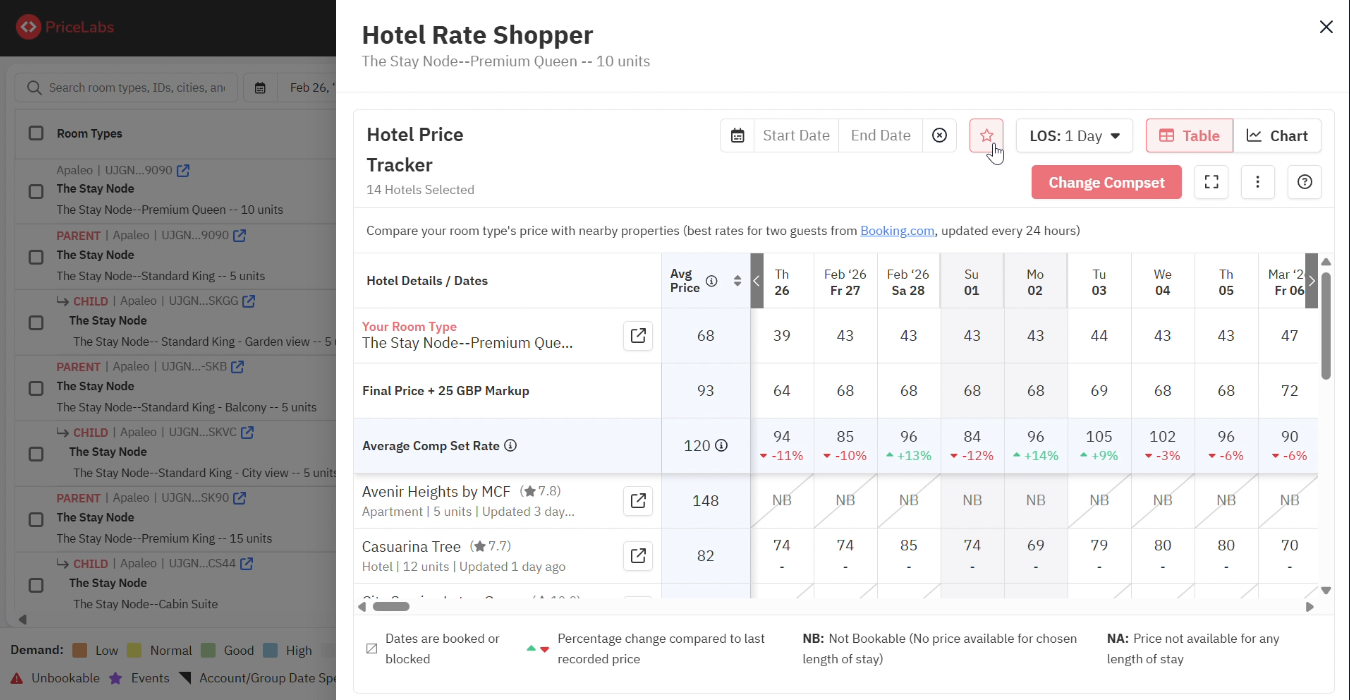 On the Hotel Rate Shopper (Hotel Data tab), click the Star Icon next to the Date Selector.