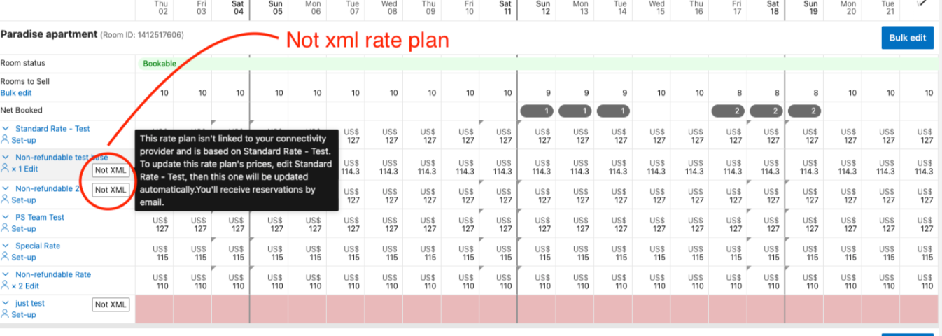 - PriceLabs cannot fetch reservations associated with child rate plans or 'non-XML' rate plans via API. To ensure these reservations sync correctly, please ensure all relevant rate plans are configured as XML-enabled in Booking.com.