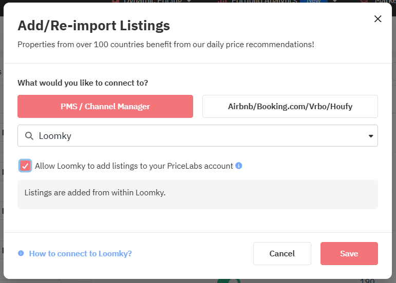 - Tick the checkbox to "Allow Loomky to add listings to your PriceLabs account." Then click