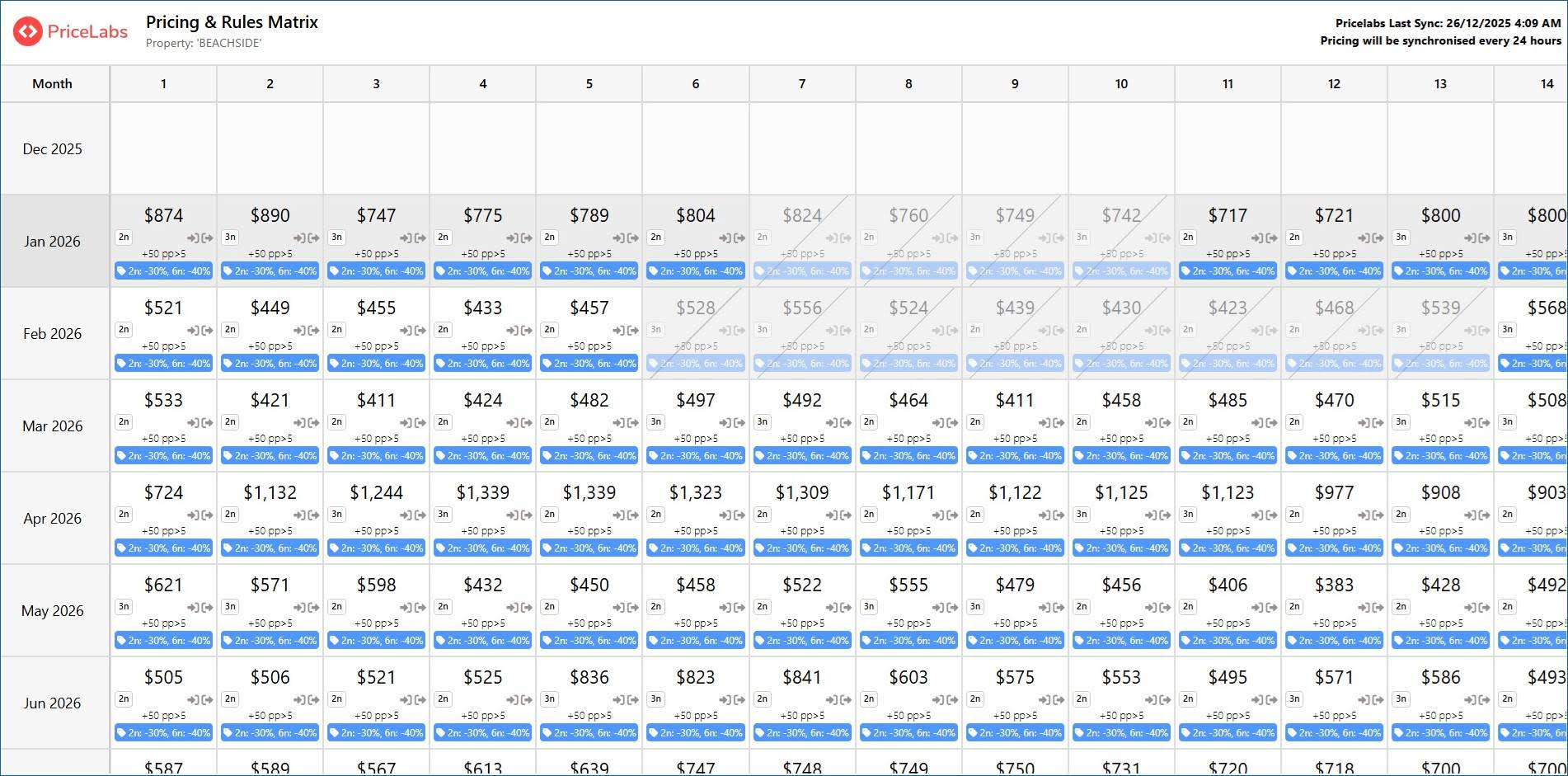 - Check your Sherlock PMS account to verify updates. You can check the prices by clicking on the "View PriceLabs" button shown below (pricing screen image attached).