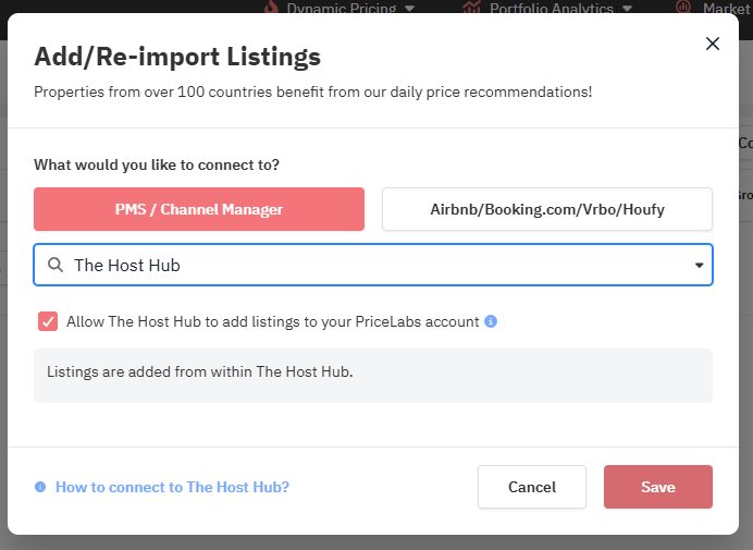 - Tick the checkbox to "Allow The Host Hub to add listings to your PriceLabs account." Then click Save
