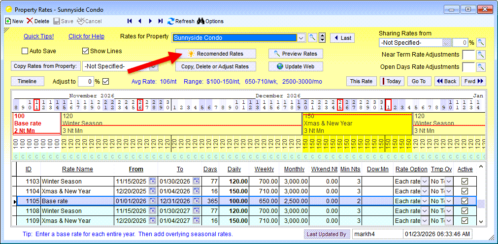 - After 5-10 mins, you should be able to pull the prices (using the "Recommended Rates" button within the VRP Property Rates form) from PriceLabs.