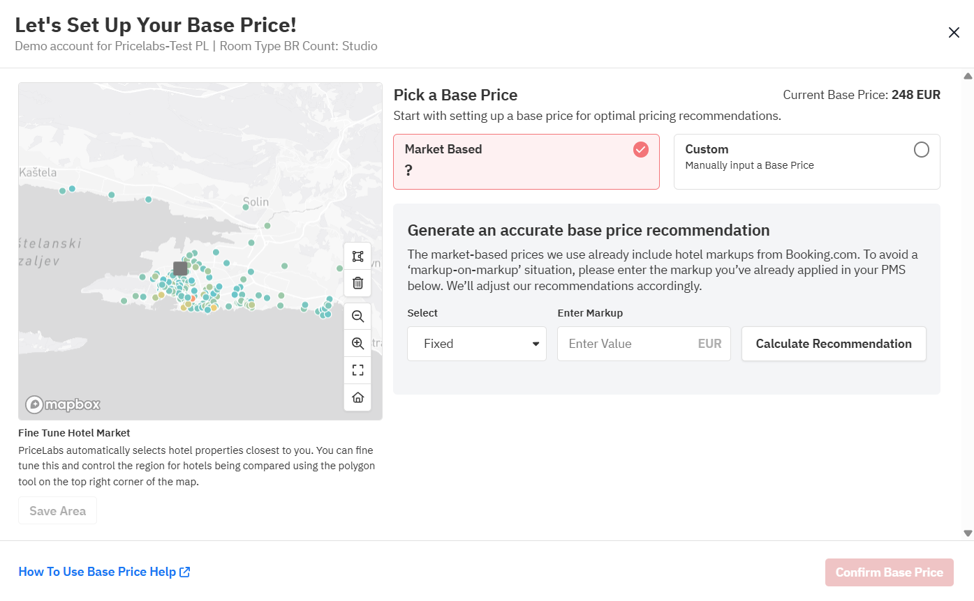 Base price is the average rate you would charge across the year. It serves as a starting point, with market factors, demand patterns, and customizations applied on top. Base Price Help The Base Price Help tool analyzes nearby hotels and provides a ...