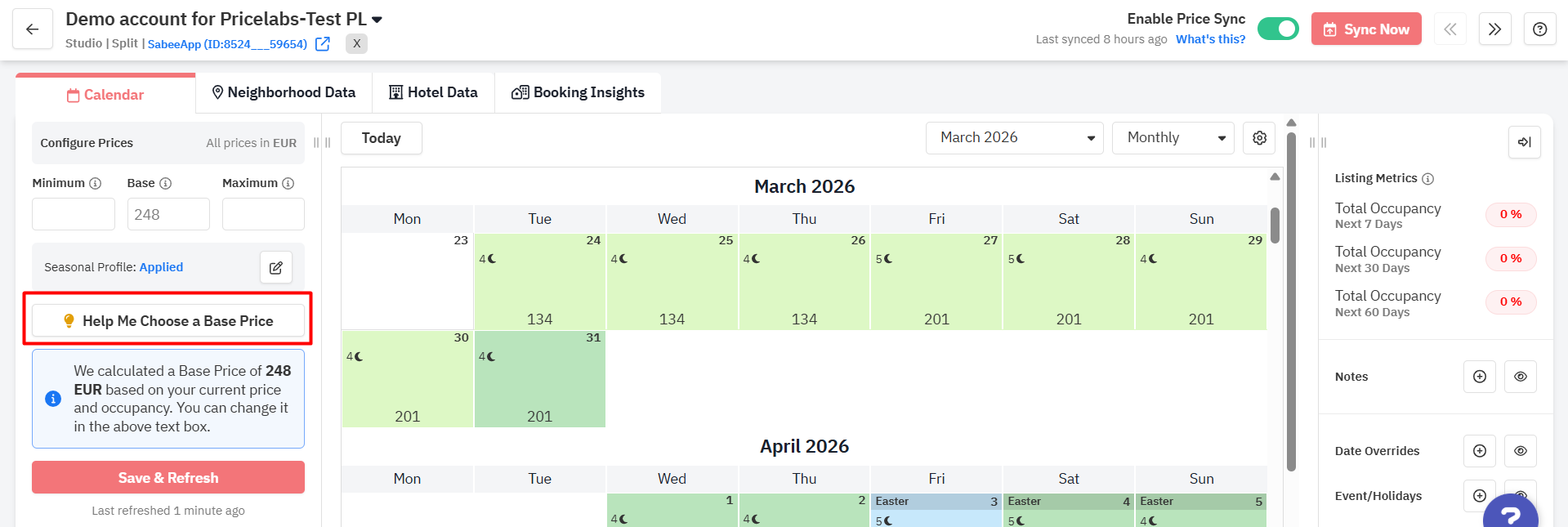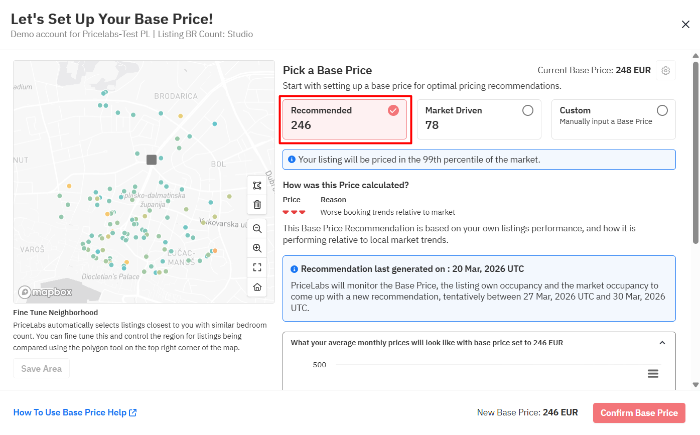Been live on PriceLabs 2–3 weeks, want a data-backed suggestion | Recommended Base Price |