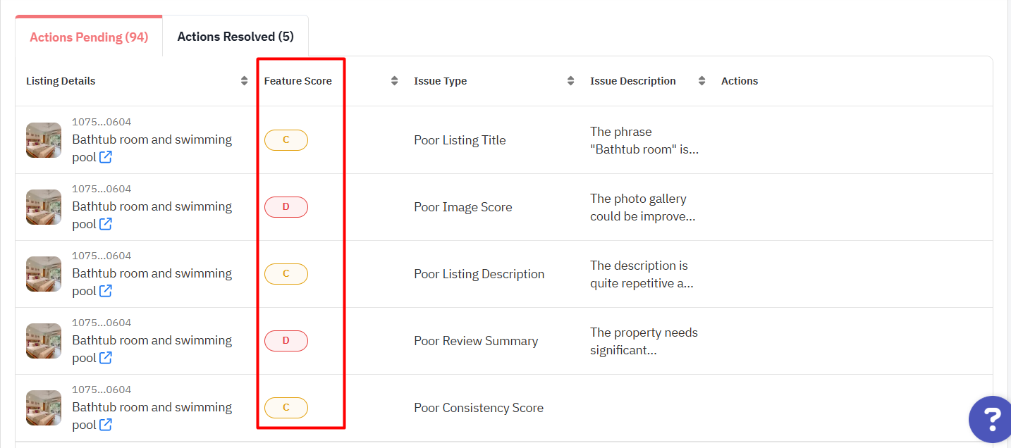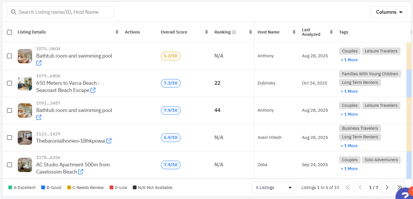 Conversely, listings with C or D grades often lack optimization in titles, photos, or guest amenities, directly affecting visibility and occupancy.
