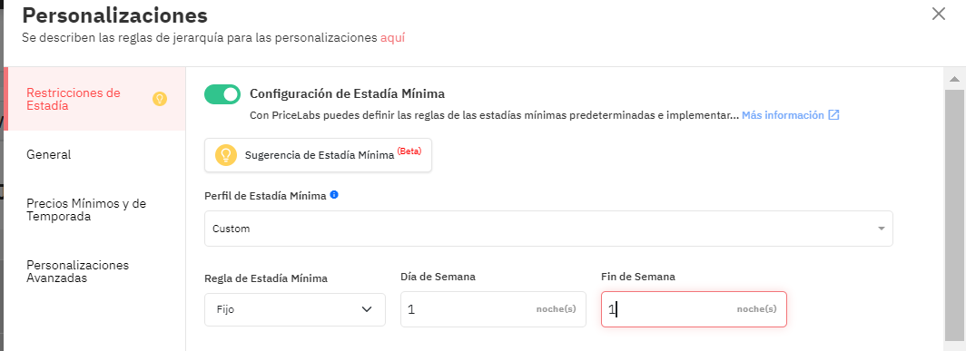 estadía mínima” de PriceLabs esté ACTIVADA.