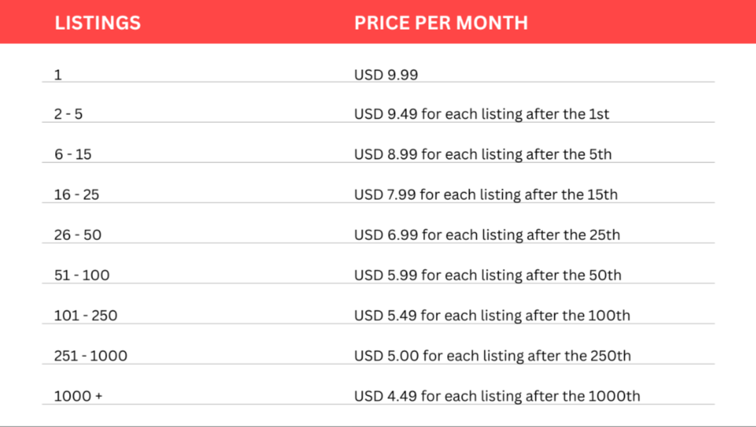 • 1 Dashboard para 1000 listados cuesta 9.99 USD/mes