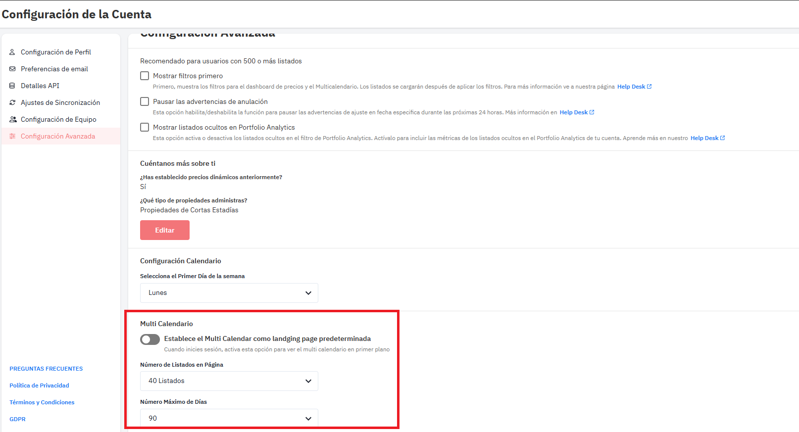 opción de hacer que el multicalendario sea tu página predeterminada en lugar