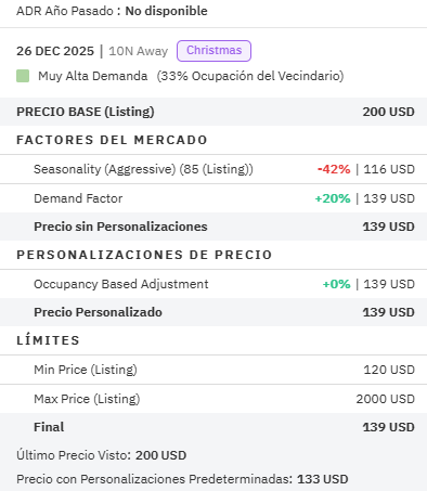 y fechas de alta demanda en tu mercado hiperlocal junto con el precio