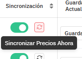 Sincronizar ahora: Al hacer clic en el botón Sincronizar ahora, los precios del