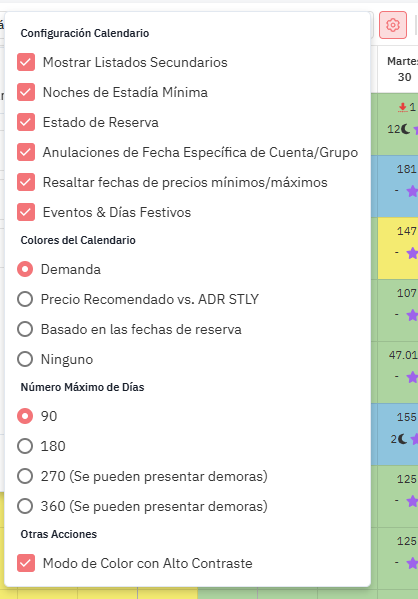 de multicalendariote permite ver y configurar las personalizaciones y ajustes de precios,