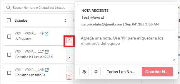 botón te permite agregar notas a tus listados. (El botón será un ícono