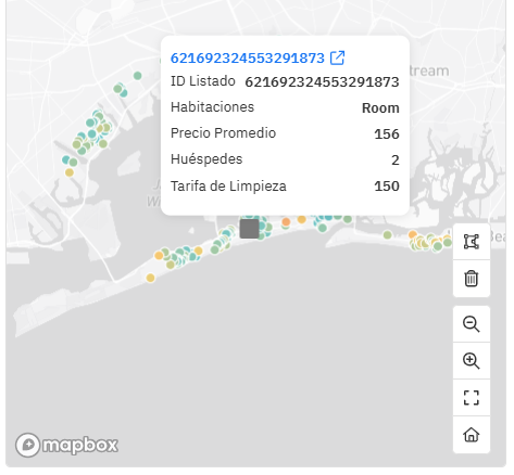 pasar el cursor sobre un punto, se mostrará el precio promedio, la