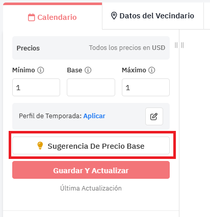 herramienta, haz clic en “Sugerencia de precio base” en la página Revisar