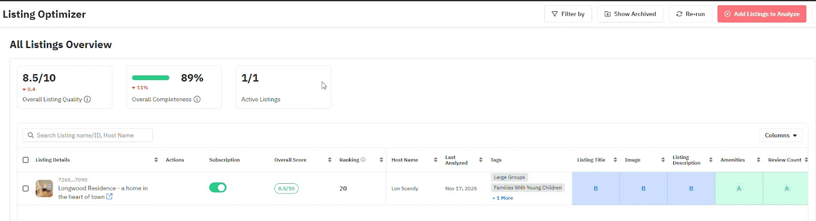 a Listing Optimizer, inicia sesión en PriceLabs → Listing Optimizer → Agregar