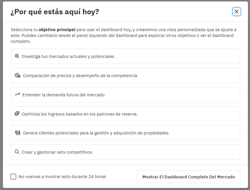 se basa en las razones más comunes por las que exploras Market Dashboards. Cada