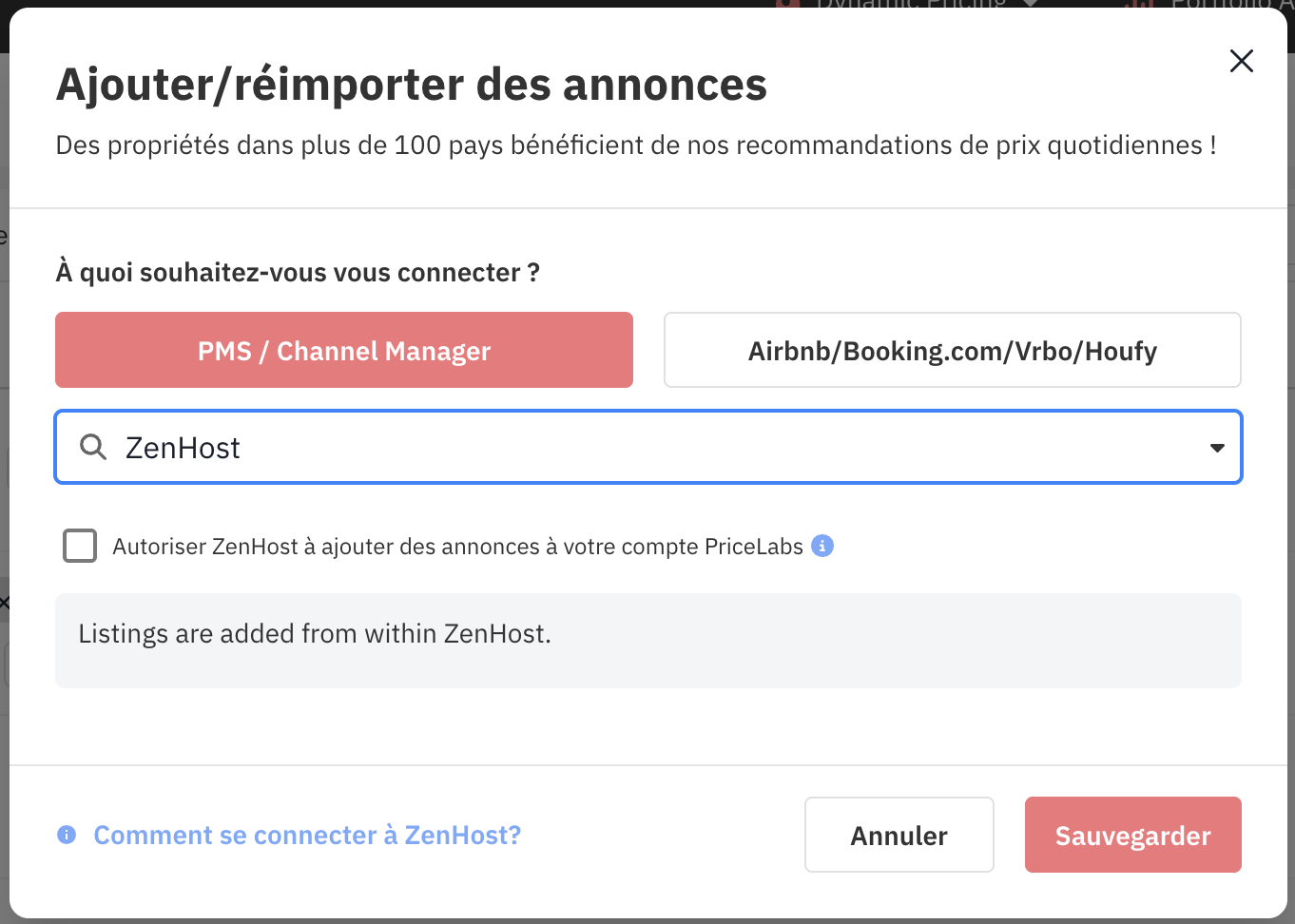 Cochez la case « Autoriser ZenHost à ajouter des annonces à votre compte PriceLabs ». Cliquez ensuite sur