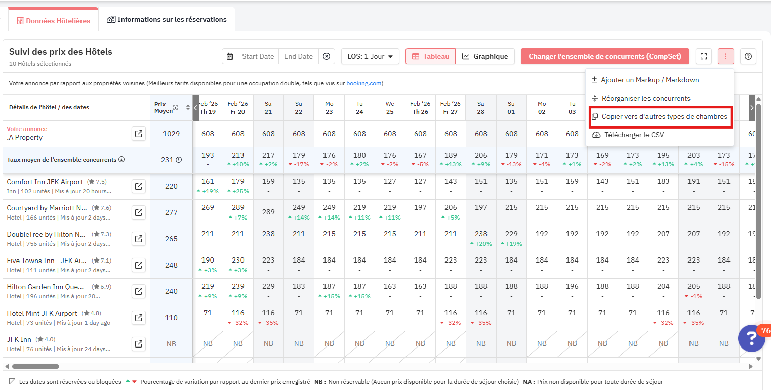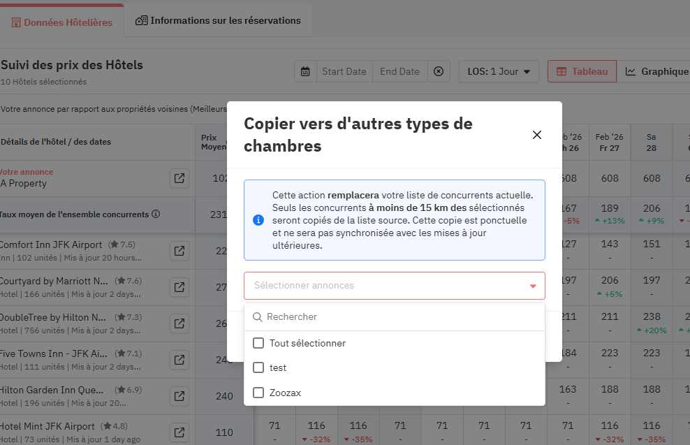 Comparateur de tarifs hôteliers : copier des ensembles de concurrents entre types de chambres/annonces