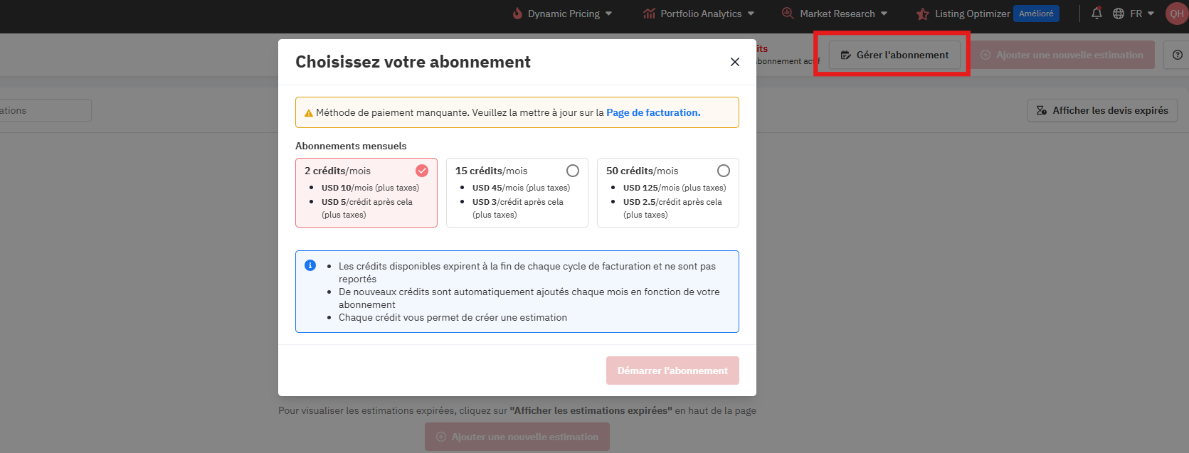 ○ Cliquez sur le bouton Gérer l’abonnement.