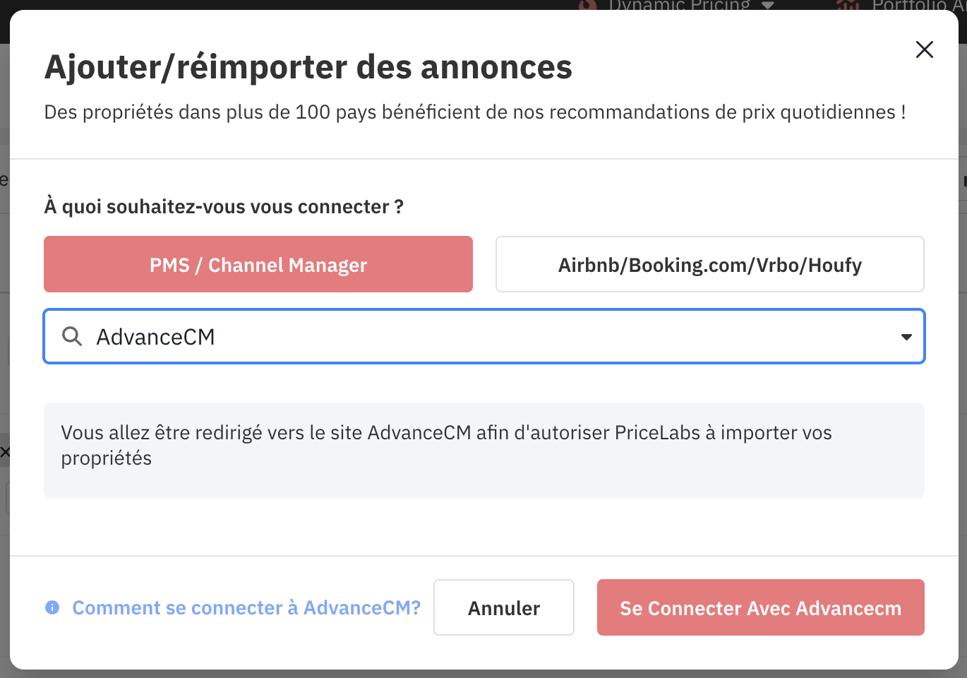 Étape 1 : Connexion d'AdvanceCM à PriceLabs