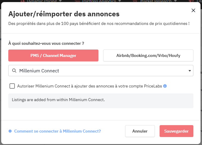 étapes, votre intégration PriceLabs-Millenium Connect devrait se dérouler à