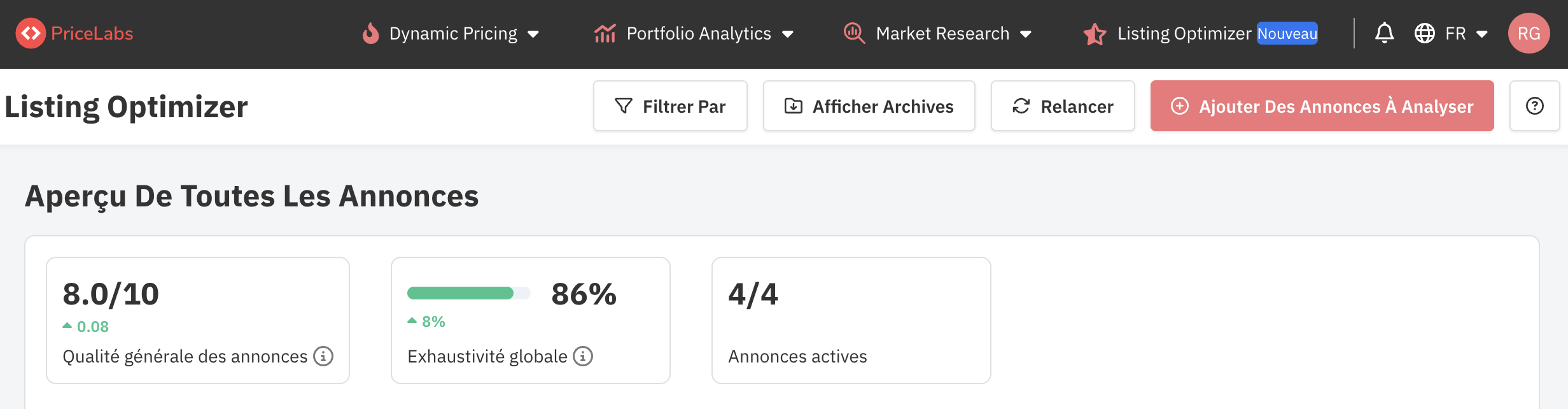 Vous pouvez accéder au Listing Optimizer directement depuis l'en-tête de votre compte PriceLabs sous l'onglet « Listing Optimizer ».