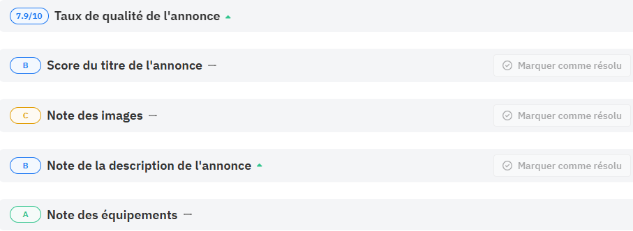 Taux de qualité de l'annonce (pourquoi a-t-elle obtenu ce score)