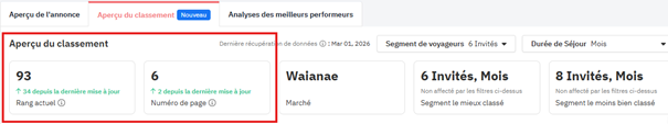 votre classement hebdomadaire sur Airbnb pour le segment de voyageurs et la