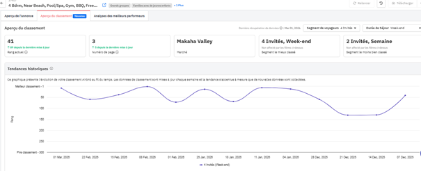 recherche Airbnb au fil du temps. Cette section vous permet de suivre le classement