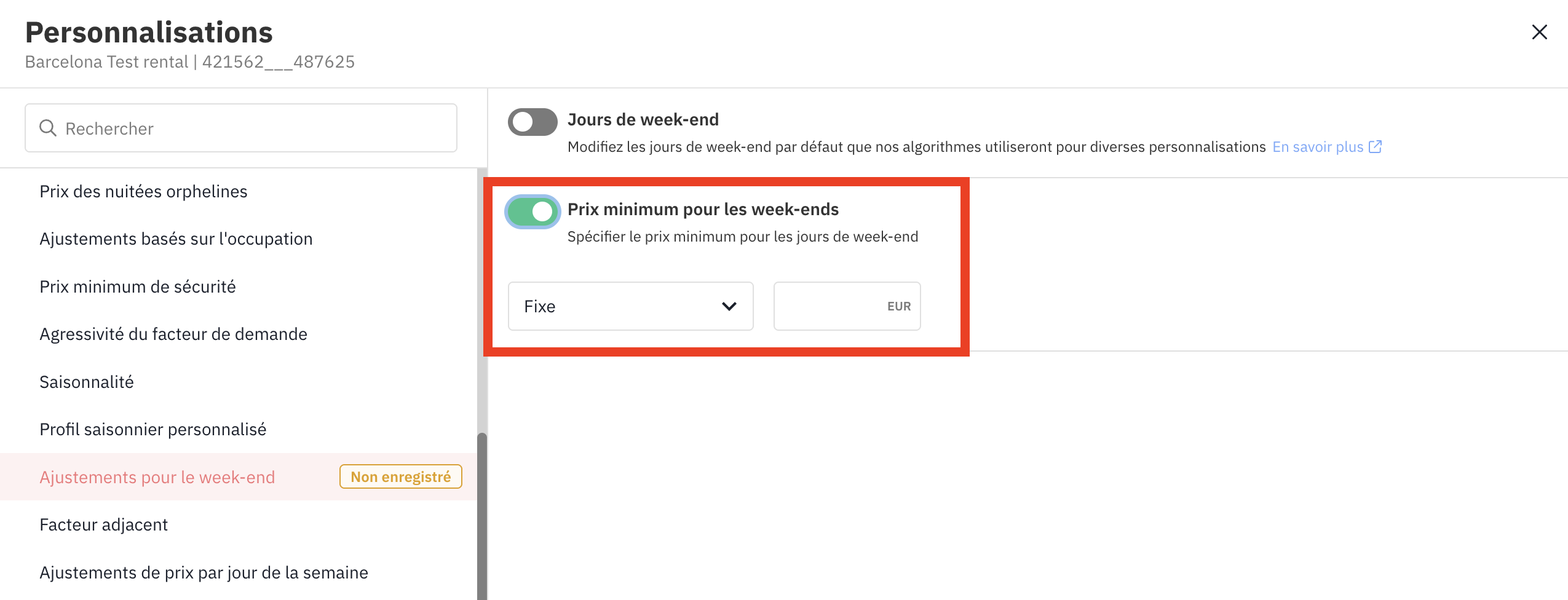 Garantit que les prix du week-end restent au-dessus d’un certain seuil, même en basse saison ou lors de réservations de dernière minute.
