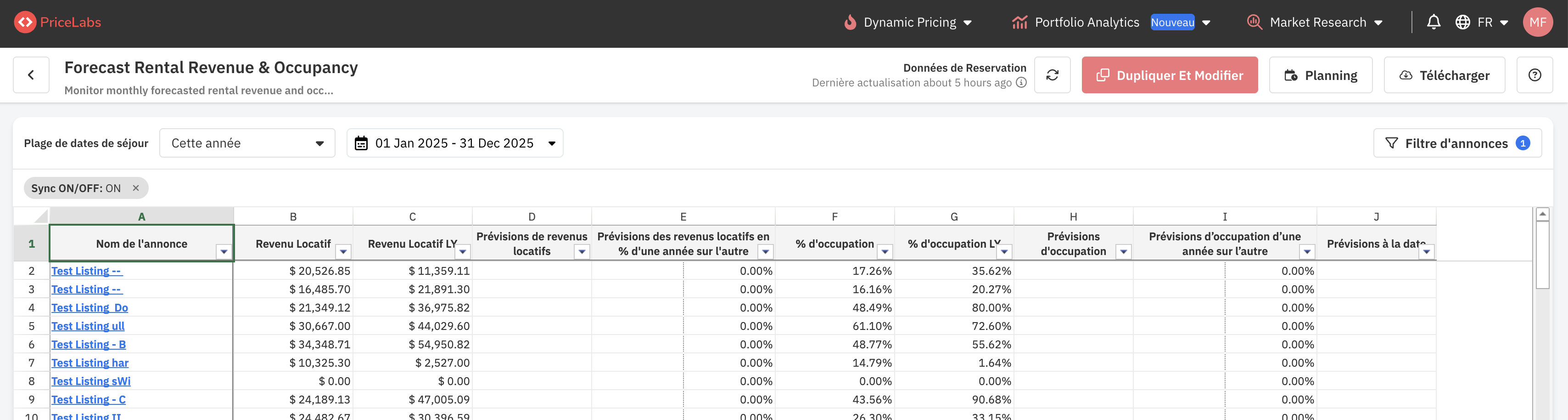 - Cliquez sur « Prévisions des revenus locatifs et du taux d'occupation ».