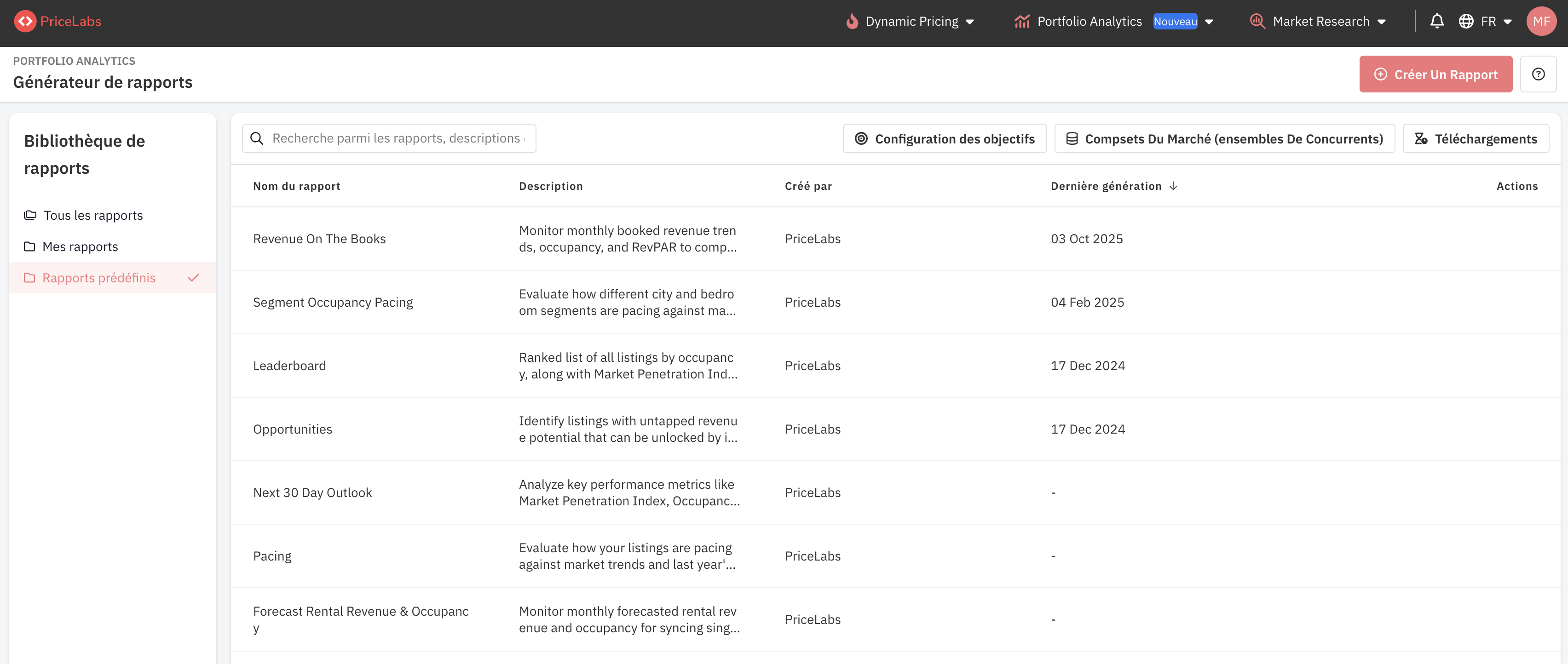 - Sous Modèles de rapport, assurez-vous que vous êtes sur Tous les modèles ou Modèles PriceLabs.