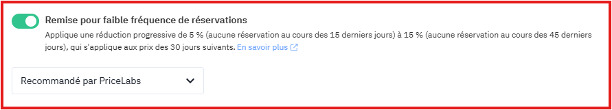 Activez cette option et sélectionnez « PriceLabs par défaut » pour