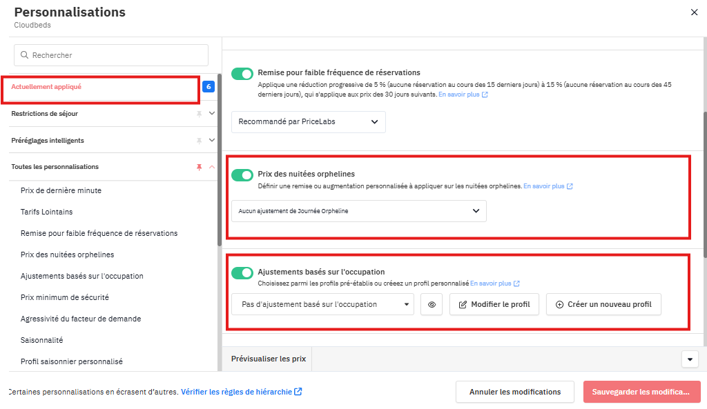 Tous les paramètres sont complètement réversibles. Autrement dit, vous pouvez appliquer les modifications, prévisualiser les prix à
