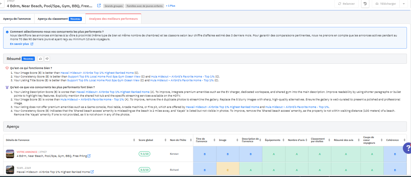 votre annonce Airbnb aux annonces les plus performantes à proximité, qui présentent