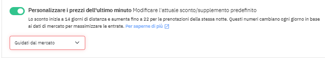 Tieni presente che per gli sconti last minute basati sul mercato, lo sconto non sarà applicato oltre i 60 giorni (limite massimo) e lo sconto massimo è limitato al 40%.