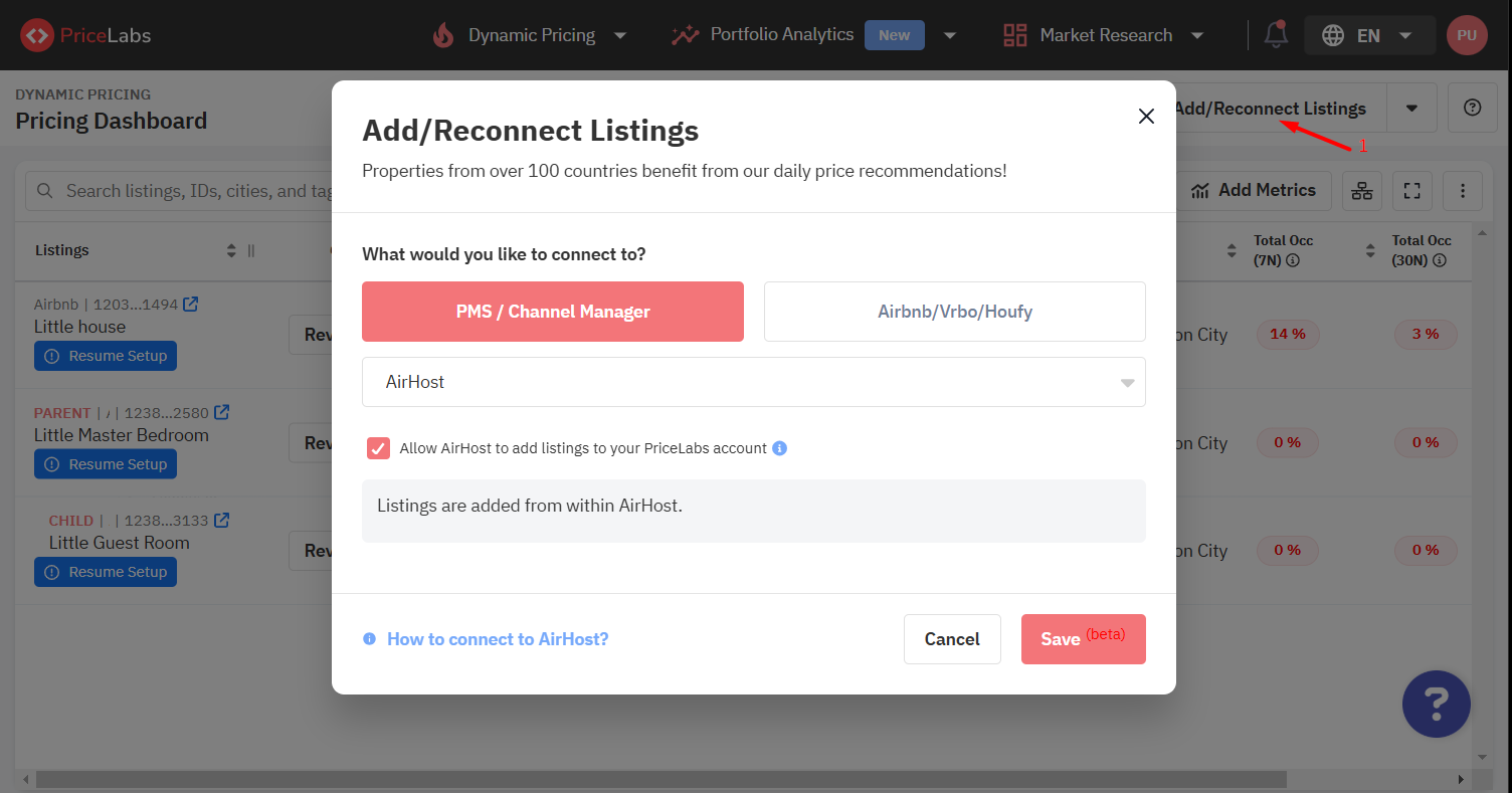 ステップ1:AirHostのリスティングをPriceLabsにインポートする