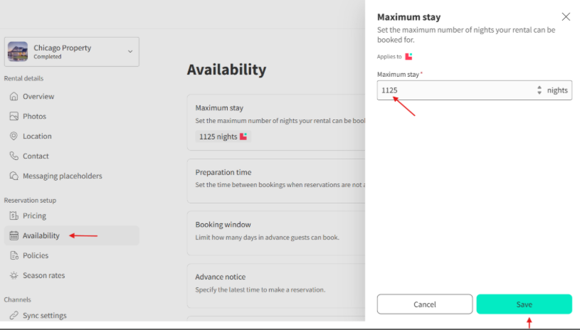 - This feature allows to you set up Maximum stay for your listings' bookings.