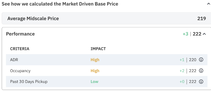 Rekomendacja opiera się na wynikach oferty na tle rynku, poziomie obłożenia, aktualnych cenach bazowych obserwowanych przez maksymalnie 60 dni. Większą wagę przypisujemy najnowszym trendom.