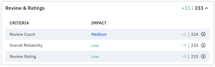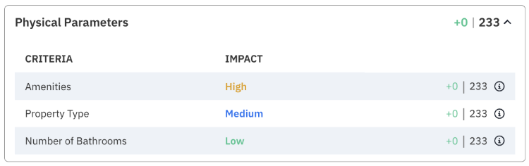 Poniżej rekomendowanej ceny bazowej podajemy powody rekomendacji oraz pokazujemy, w jaki sposób wpływają one na cenę (w skali od 1 do 3). Przykładowo — jeśli z danego powodu rekomendujemy podwyższenie ceny, oznaczamy to kształtem zielonej piramidy skierowanej czubkiem w górę (od 1 do 3 piramid, w zależności od skali wzrostu). W przypadku obniżenia ceny stosujemy kształt czerwonej piramidy skierowanej czubkiem w dół.