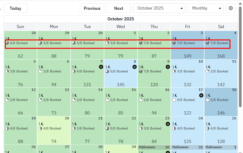 Isso significa que o sistema analisa o número total de noites reservadas em relação ao número total de noites disponíveis em todo o intervalo de datas e, em seguida, aplica o ajuste correspondente.