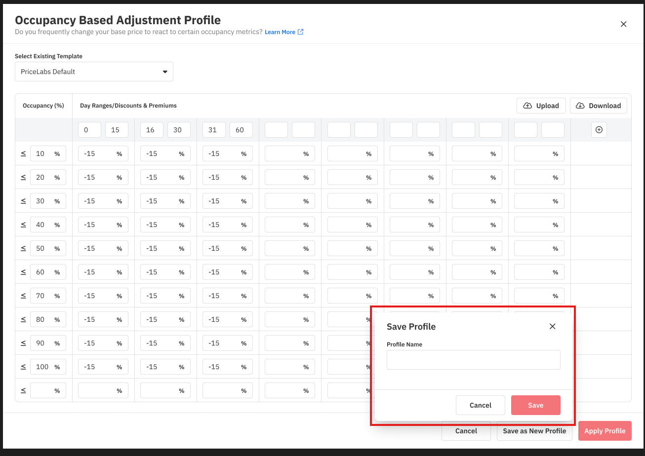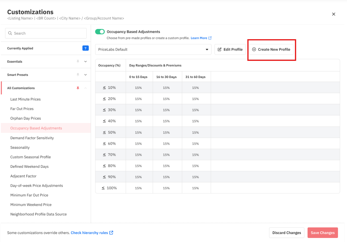 Padrão do PriceLabs – Utiliza nossas configurações padrão (conforme mostrado na captura de tela acima). Você pode esse perfil como está ou modificá-lo para que se adapte melhor às suas necessidades.