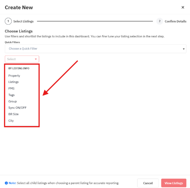 se um imóvel tiver anúncios-filho associados, certifique-se de que todos os anúncios relevantes sejam selecionados, para indicar o desempenho total do imóvel.