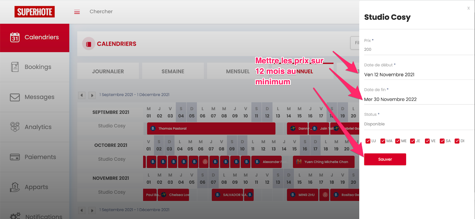 O PriceLabs pode enviar preços diários e estadia mínima para o SuperHote com até 720 dias de antecedência.