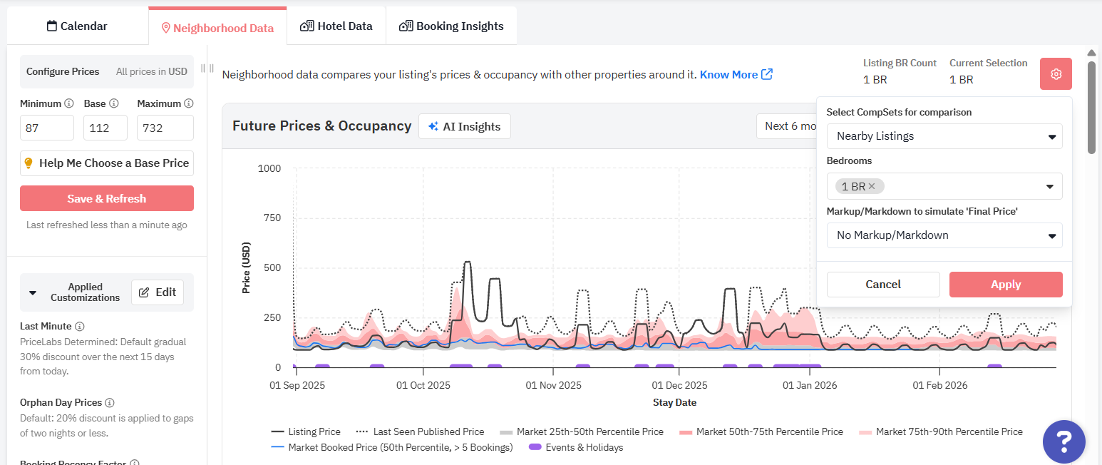 O recurso Dados da Vizinhança pode ser usado para investigar a resposta a algumas dessas perguntas. Embora existam vários outros fatores que podem influenciar a definição dos preços, esperamos que esses dados hiperlocais sejam uma fonte prática para os usuários do PriceLabs explorarem as tendências em sua região.