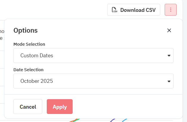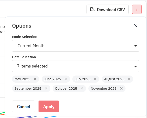 Meses atuais (padrão): Selecione um ou mais meses futuros para ver como as métricas estão se comportando.